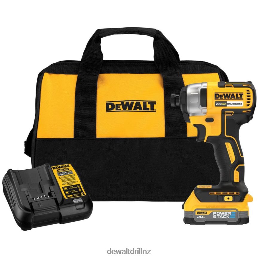 This Brushless Impact driver has a compact lightweight design and bright LED for working in dark or confined spaces. With up to 1,500 in-lbs. of torque this impact driver provides the power you need to complete a wide range of applications. The handle features an ergonomic design for balance and easier tool control. This cordless kit includes our most powerful, most compact, and lightest weight 20V MAX* battery**, with 50% more power, 25% more compact, and 15% less weight than the DCB203** . The DEWALT POWERSTACK compact battery works with all DEWALT 20V MAX* power tools and chargers.