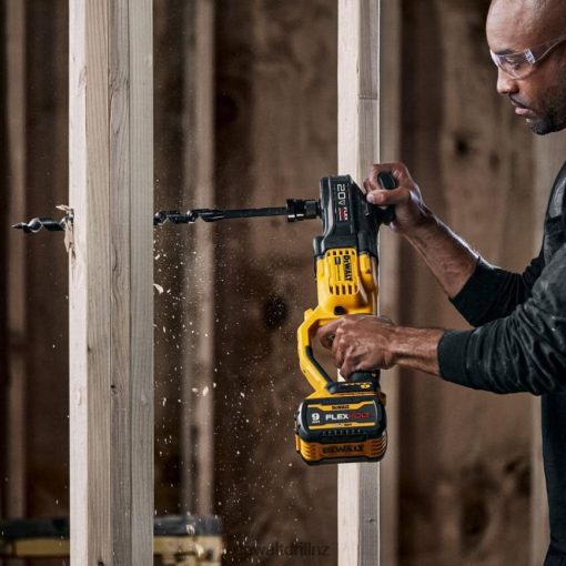 Stay productive on the jobsite with the 20V MAX* Brushless Cordless 7/16 in. Compact Quick Change Stud and Joist Drill with FLEXVOLT ADVANTAGE. Conveniently swap bits mid-job with little time lost using the 7/16 in. hex quick change chuck. Don’t worry about bind-up situations, this drill uses anti-rotation E-Clutch technology to detect the motion of the tool and shut it down if necessary. You can spend less time recharging and more time working as you drill up to 495 7/8 in. holes per charge with the stud and joist drill. This power tool is compatible with DEWALT FLEXVOLT battery packs, which were designed to enhance your tool’s performance and output. Battery and charger sold separately.