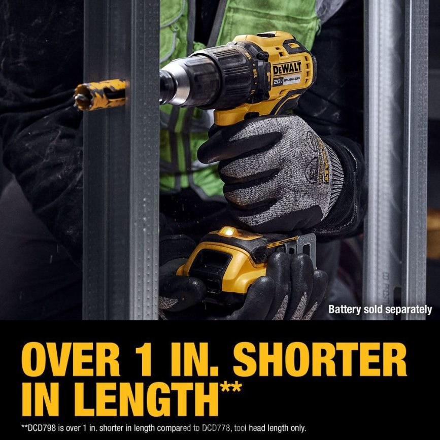 Complete a variety of concrete and masonry drilling applications with the new 20V MAX* Brushless 1/2 in. Hammer Drill. At over 1 in. shorter in length** at 6.93 in. (tool head length only) and 404 unit watts out, this brushless hammer drill can complete a variety tasks on the jobsite. The on-tool LED work light helps to provide illumination to maximize efficiency and productivity. Battery and charger sold separately.
