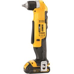 The DeWALT right angle drill/driver kit contains a drill/driver, 20 Volt Lithium-Ion battery, charger, belt hook and a kit bag. Drill/driver is operated by a 20 Volt Lithium-Ion battery that is ideal for a wide variety of applications. Compact design facilitates working in confined spaces and the multi-trip trigger offers good operational comfort. It operates at dual speeds of 0 to 650 RPM and 0 to 2000 RPM for user versatility. 3/8 Inch ratcheting chuck features a deep hex pocket that helps in inserting the 2 Inch hex bit into the tight spaces.
