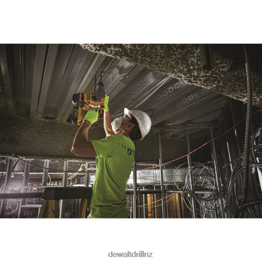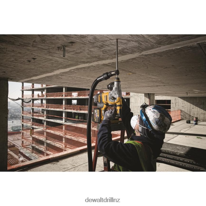 The DeWALT 20 Volt Max 1-1/8 Inch SDS-Plus L-shape rotary hammer tool is a high-performance drill powered by a brushless motor and a durable German-engineered mechanism, which delivers 3.5 Joules of impact energy for fast drilling in concrete. This lightweight cordless tool is perfect for structural connections, beam and column anchorage, rod hanging, seismic and safety attachments, steel stanchion mounting as well as cable tray and strut mounting. Rotating dial aids to set tool to a specific application mode that includes drill, hammer drill or chip. It is a part of the PERFORM and PROTECT product line, which is integrated with the anti-rotation E-CLUTCH system and the SHOCKS ACTIVE VIBRATION CONTROL system. This E-CLUTCH protects the user in bind-up situations by stopping the rotation of the bit. SHOCKS effectively minimizes vibration felt by the user at the handles compared to rotary hammers without this feature. This hammer becomes OSHA Table 1 Compliant when used with the DWH304DH on-board extractor. Rotary hammer tool comes with a depth rod and 360 degree side handle.