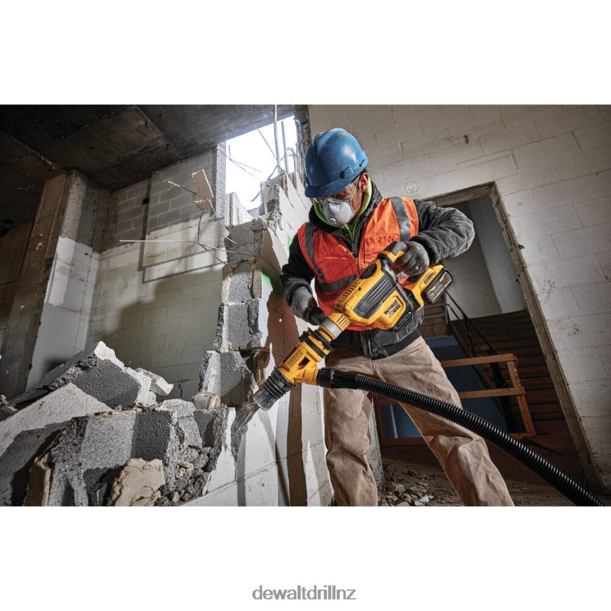 The DeWALT 60 Volt Max 1-3/4 Inch SDS Max combination rotary hammer tool kit includes two FlexVolt DCB609 batteries, fast charger, 360 degree side handle and a kit box. Rotary hammer tool is precisely designed to deliver 10.5 Joules of impact energy for fast drilling and chipping, even in the hardest concrete. This lightweight and high-performance hammer is powered by a brushless motor and a durable German engineered mechanism. It is equipped with the constant speed electronics to maintain speed under load. Tool is perfect for high-performance horizontal serial drilling for #5 to 8 rebar, dry coring up to 4 Inch, chipping in any upper to lower wall as well as bushing applications. It is integrated with the patented E-CLUTCH system and the SHOCKS Active Vibration Control system. E-CLUTCH system safeguards the user in bind-up situations by stopping the rotation of the bit. The SHOCKS effectively minimizes vibration felt by the user at the handles, compared to rotary hammers without this feature. This tool comes Tag Ready so users and companies can attach the DeWALT Tag and track its location virtually anywhere via the DeWALT Tool Connect app. The WIRELESS TOOL CONTROL allows to link the tool to the DCV585 60 Volt Max dust extractor for remote extractor activation. It has 7-position, variable-speed control for precision hole placement, chipping and drilling with Atomic Undercut bits.