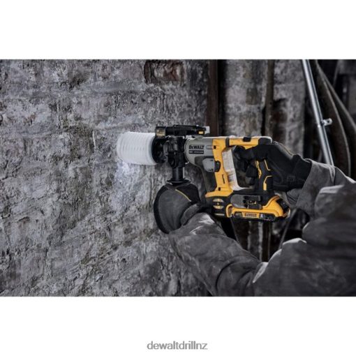 The DEWALT Atomic 20 Volt Max SDS Plus cordless rotary hammer tool kit is designed to tackle most demanding jobs with high-performance. It is equipped with brushless motor and durable German-engineered mechanism, which delivers 1.4 Joules of impact energy. It is part of the PERFORM and PROTECT product line and is integrated with the SHOCKS ACTIVE VIBRATION CONTROL System. The SHOCKS ACTIVE VIBRATION CONTROL System reduces vibration felt by the user at the handles comparted to rotary hammers without this feature. This tool becomes OSHA Table 1 compliant when used with the DWH200D shroud and DWH161D1 dust extractor. Mode selector switch of tool aids to switch between drill and hammer drill applications quickly. Lightweight and compact design makes this tool perfect for rod hanging, concrete forming, cable tray and strut mounting, clip and bracket mounting and railing mounting. Rotary hammer comes with two DCB203 20 Volt Max 2.0 Amp-hours batteries, DCB112 charger, 360 degree side handle, depth rod and a belt hook in kit box.